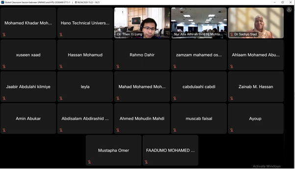 The Faculty of Engineering at Universiti Malaysia Sarawak (UNIMAS) successfully hosted its first Global Classroom session in collaboration with Hano Technical University (HTU), Somalia, marking a significant milestone under the Memorandum of Understanding (MoU) established in 2023.